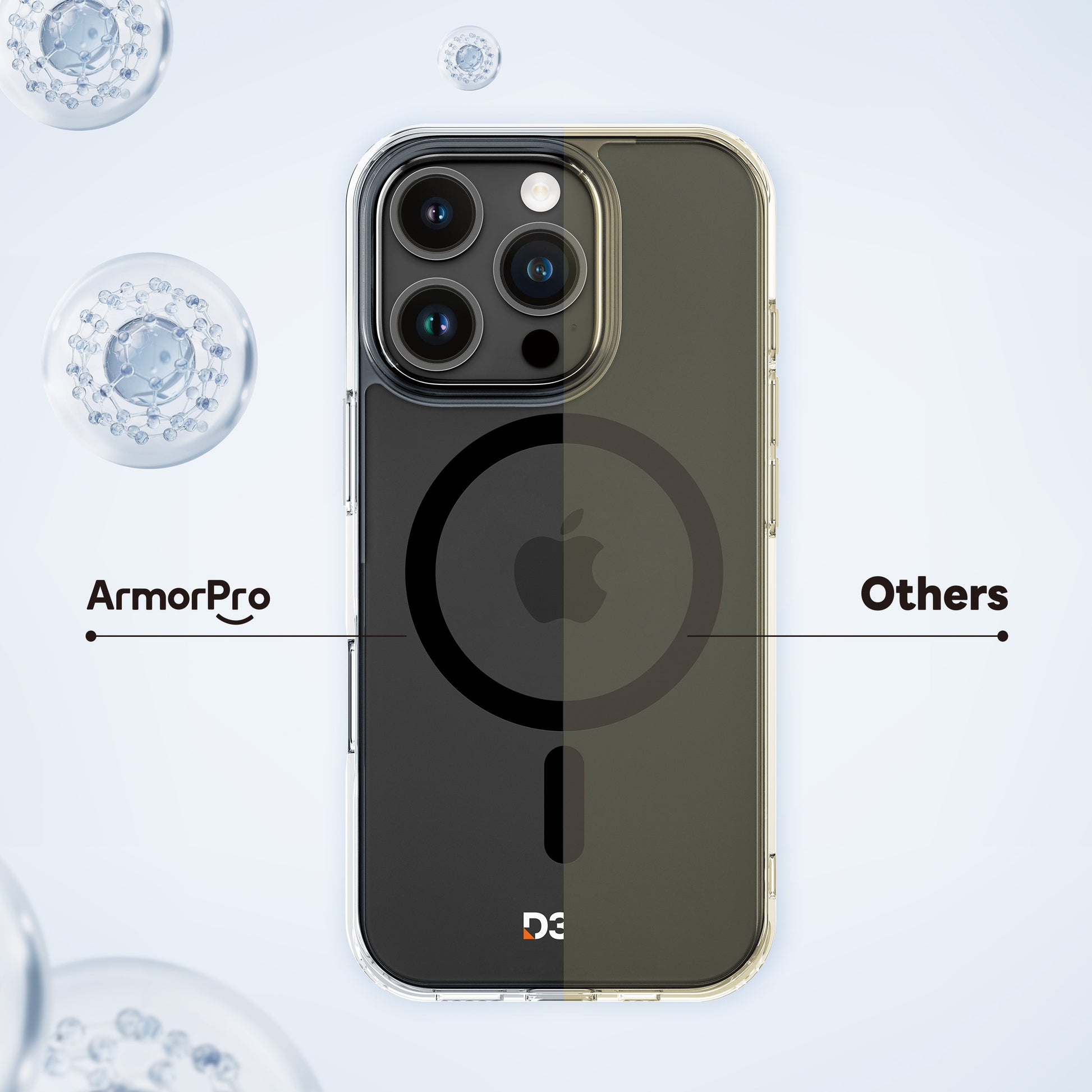 ArmorPro D3O Protected Clear Case with Black MagSafe for iPhone 16 Series