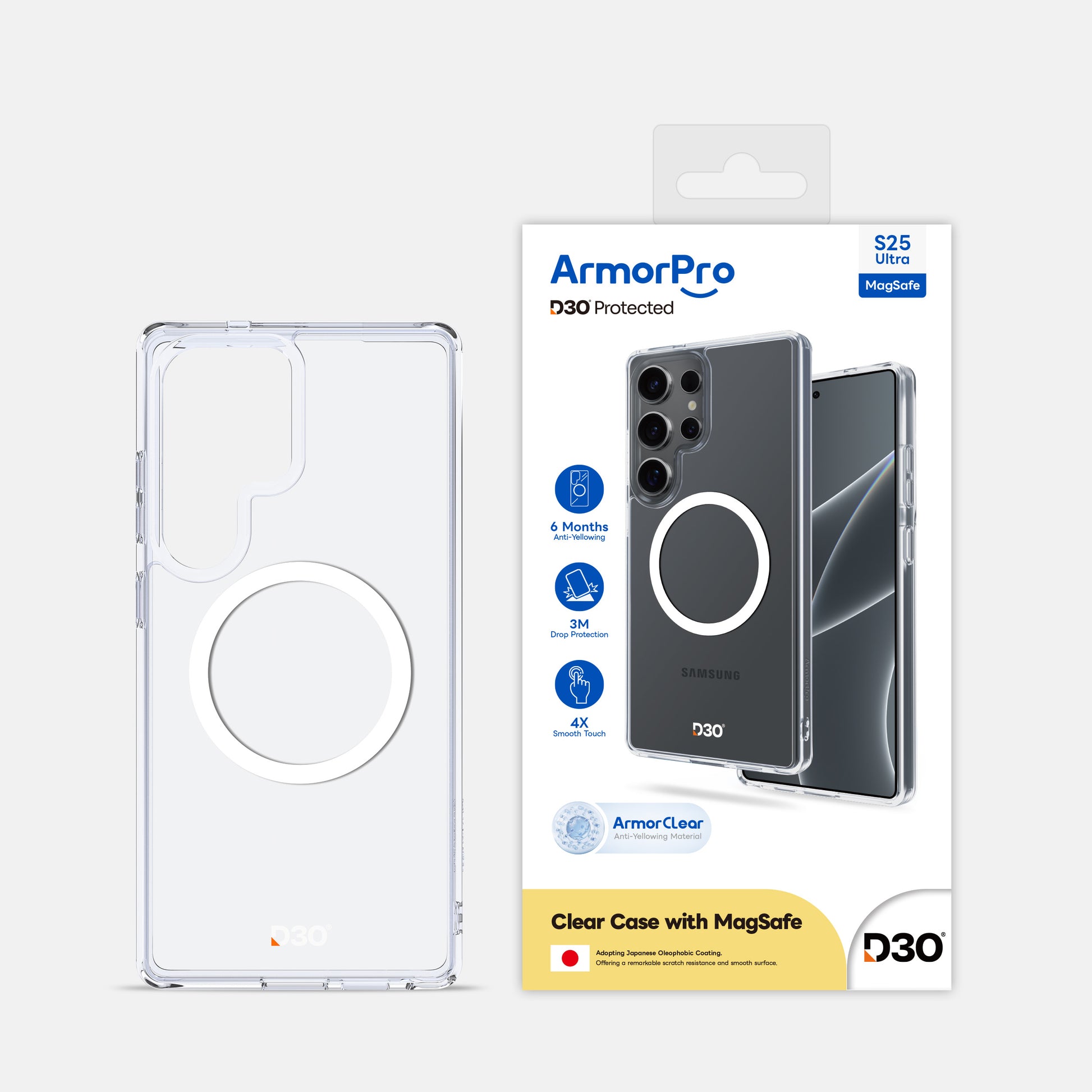 ArmorPro D3O Protected Clear Case with MagSafe White for SamSung S25 Series