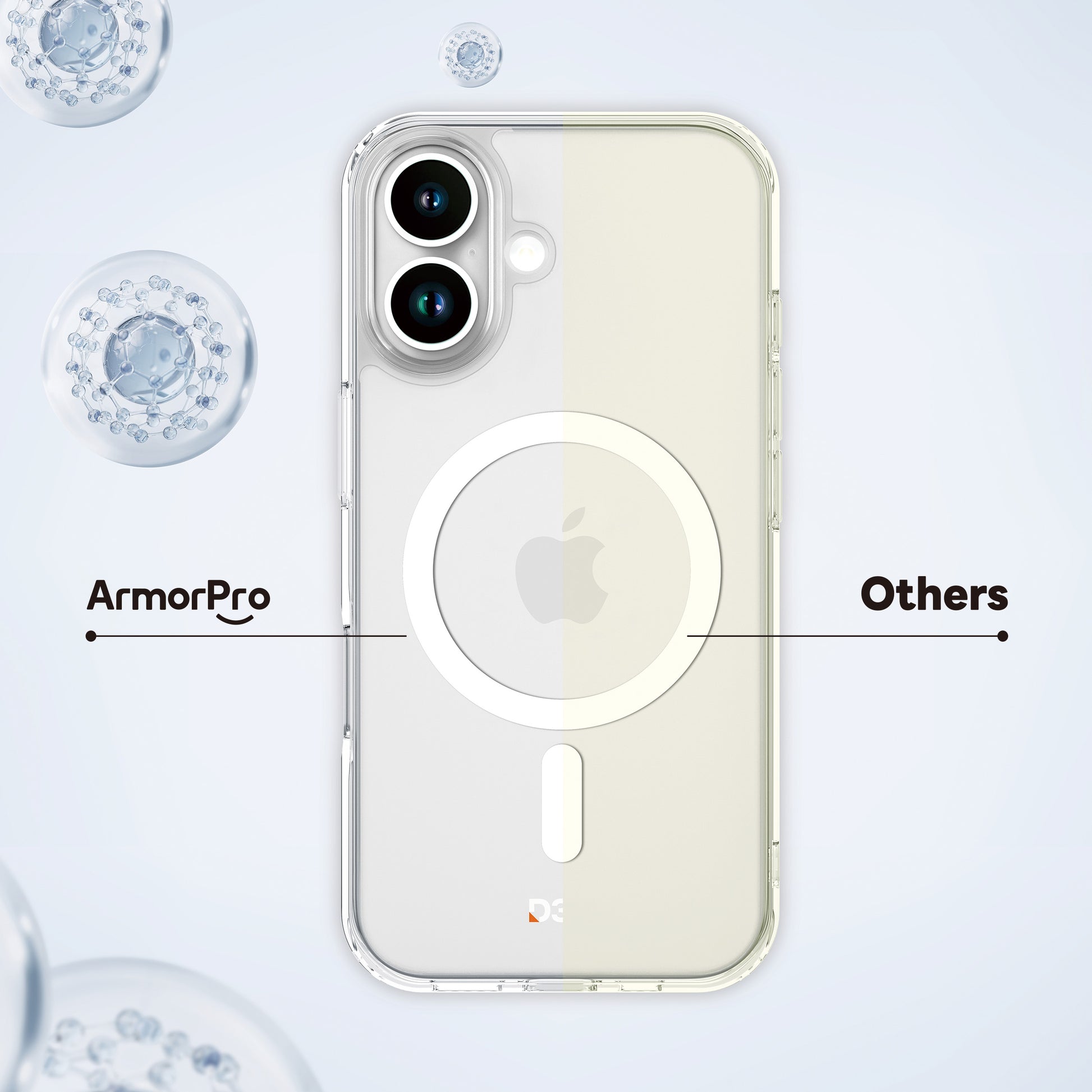 ArmorPro D3O Protected Clear Case with White MagSafe for iPhone 16 Series