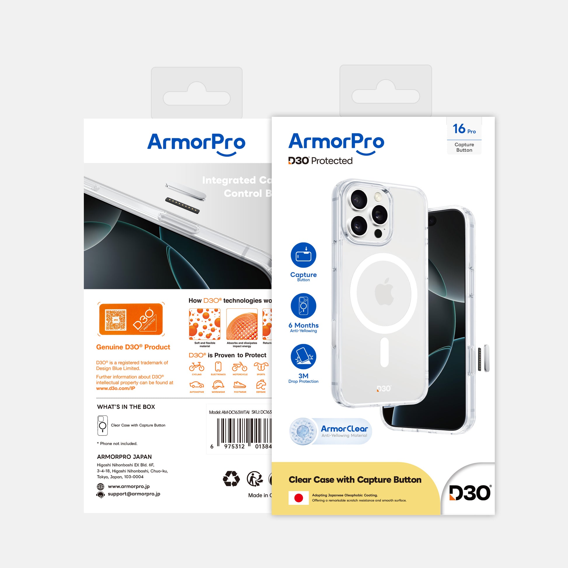 ArmorPro D3O Protected TPU+PC MagSafe Clear Case with Capture Button for iPhone 16 Pro & 16 Pro Max